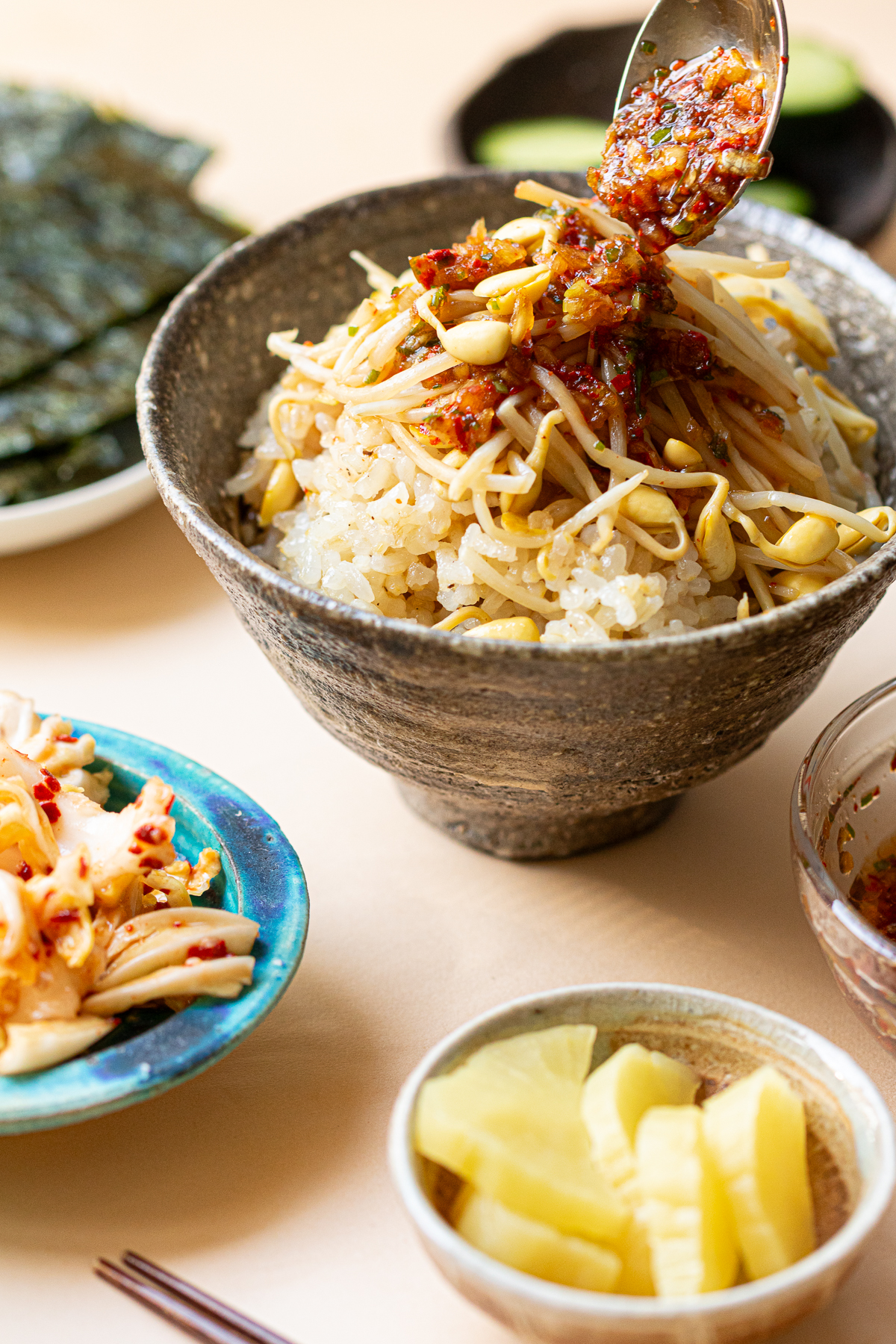 韓国料理好きの方には、また別なヤンニョムジャンを使った本格韓国もやしごはん(コンナムルパプ)のレシピもオススメです。