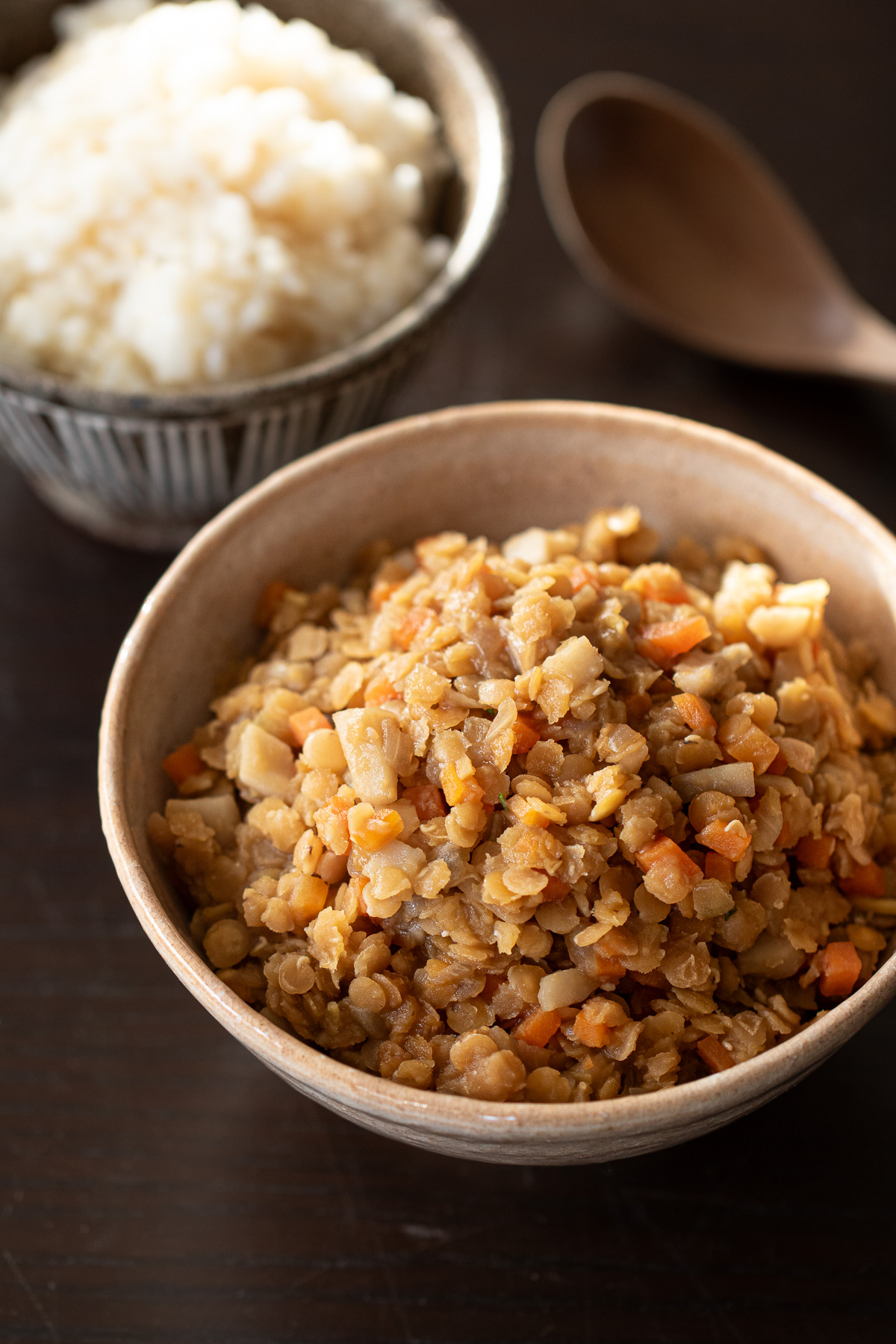 低糖質・高タンパクな赤レンズ豆を和風そぼろに仕立てました。